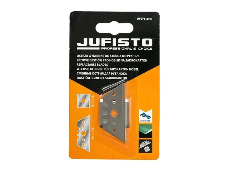 Ostrze do struga Jufisto do płyt g-k to niezbędny produkt, który przyda Ci się na etapie wykonywania prac remontowo-budowlanych. Pozwala na precyzyjne i łatwe obrobienie krawędzi płyt gipsowo-kartonowych. Wyróżnia się trwałością oraz wysokim standardem wykonania. W zestawie znajdziesz ostrze w kształcie trapezowym oraz kwadratowym.